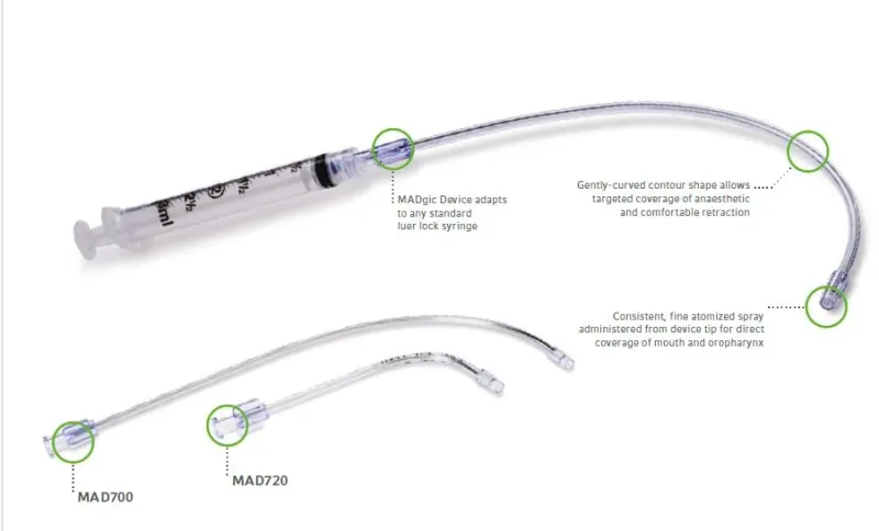 The Rusch MADgic Laryngo-Tracheal Mucosal Atomization Device uses advanced atomization technology to deliver medications as a fine mist, allowing for targeted treatment and efficient absorption. Its non-invasive design eliminates the need for invasive procedures, providing a comfortable and quick alternative for both patients and healthcare providers.