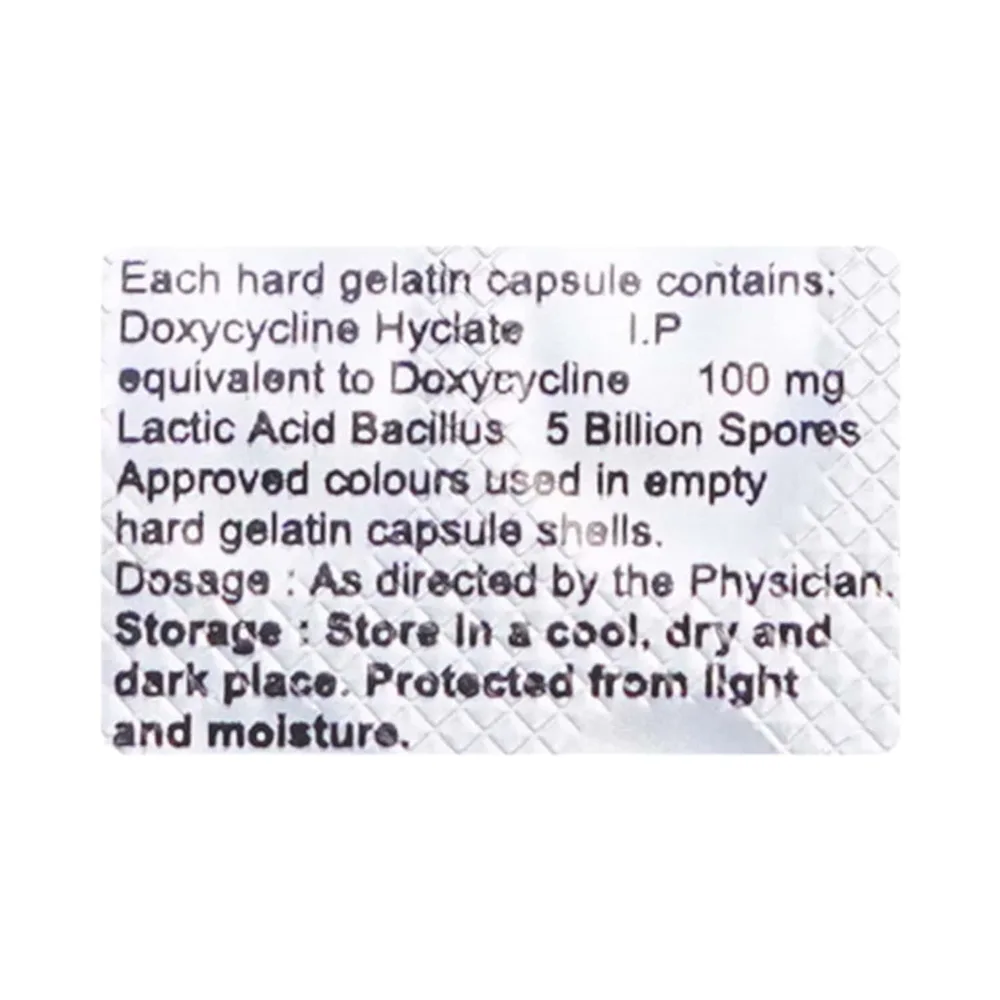 Doxycycline is an antibiotic and lactobacillus sporogenes is a probiotic, a beneficial bacterium that is already present in the intestine of the body. It is also known as healthy or good bacteria of the gut. A Doxid L Capsule works by killing the bacteria responsible for infection and diarrhoea and lactobacillus sporogenes help in maintaining the normal bacterial flora of the gut.