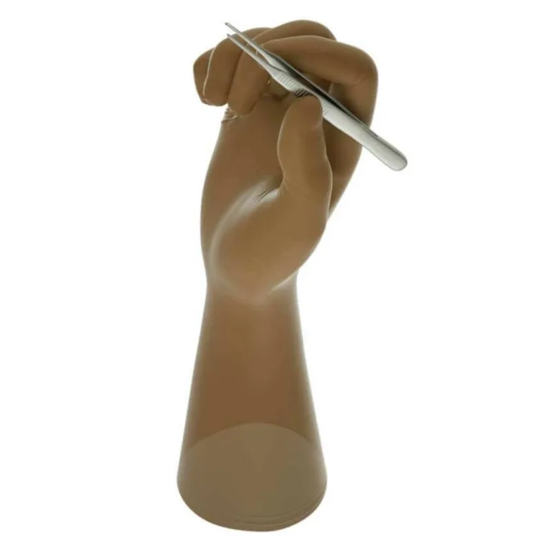 5, to accommodate a range of hand dimensions. The external surface features a smooth finish with micro-texturing to enhance grip, while the internal surface is polymer-coated using DERMASHIELD Technology to facilitate donning and doffing, even in damp conditions, and to minimize potential skin irritation from latex proteins. The distinctive brown coloration is intended to reduce visual glare in surgical environments and to aid in the immediate detection of glove perforations.