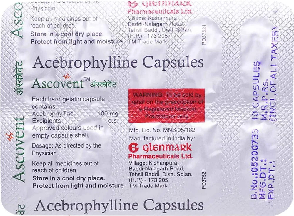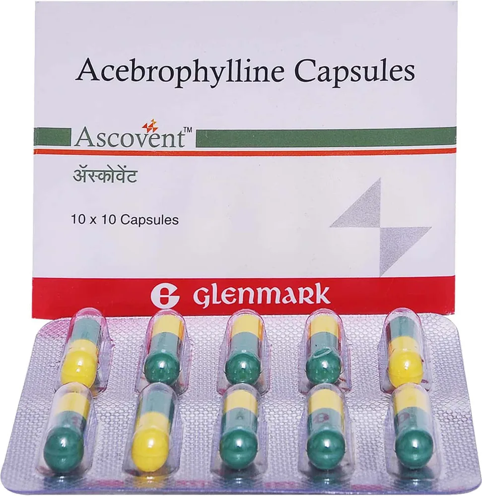 Ascovent Capsule is used for breathing difficulty associated with lung-related disorders like asthma and chronic obstructive pulmonary disease (COPD). It contains acebrophylline as its active ingredient. This Capsule promotes muscles relaxation around the airway and inhibits mucous secretion, thus clearing the airway and also eases breathing.