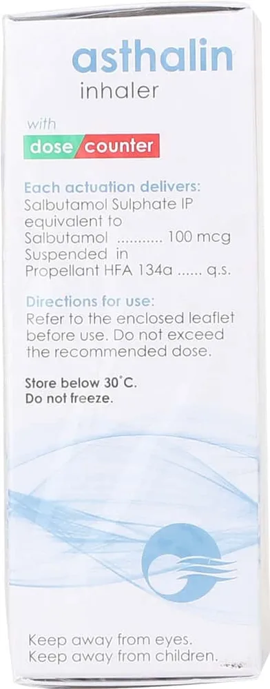 Asthalin 100mcg inhaler contains a quick-acting anti-asthmatic medicine. Salbutamol widens the airways and makes breathing easier in patients with asthma and other breathing conditions. It thus relieves the symptoms of wheezing and shortness of breath.