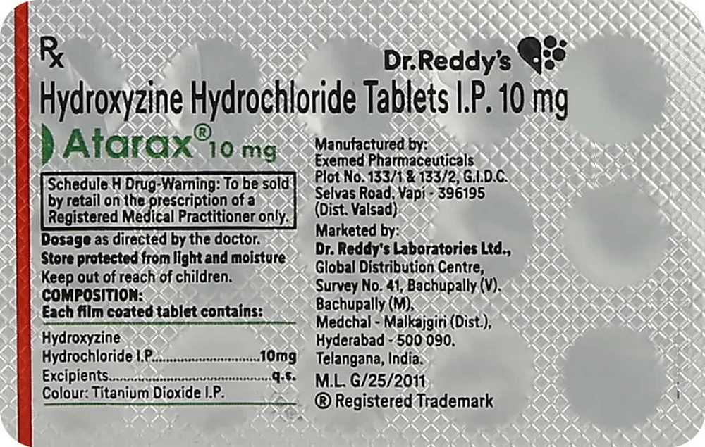 Atarax tablet is an anti-allergic medicine. It is used for the management of allergic skin conditions such as pruritus, urticaria and eczema. Atarax helps in improving symptoms such as itching, swelling, redness, rashes and scaly and patchy skin.