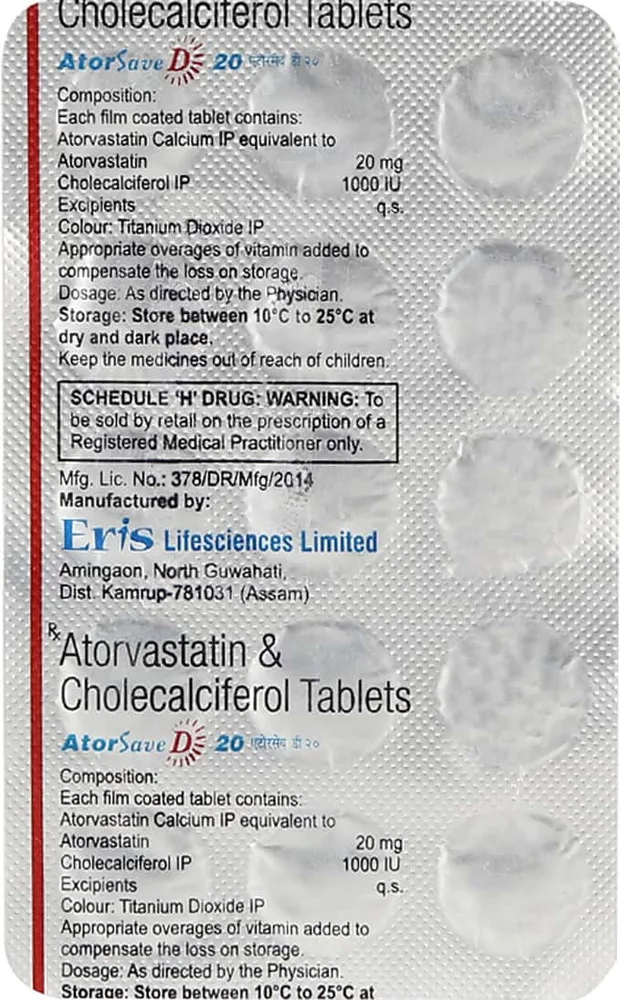 Atorsave D Tablet is a cholesterol-lowering medicine that is used to treat high levels of cholesterol in the body, in a condition known as hypercholesterolemia. It contains a combination of atorvastatin and Vitamin D3/cholecalciferol as its active substances. Atorsave D Tablet should not be used in children below 10 years of age.