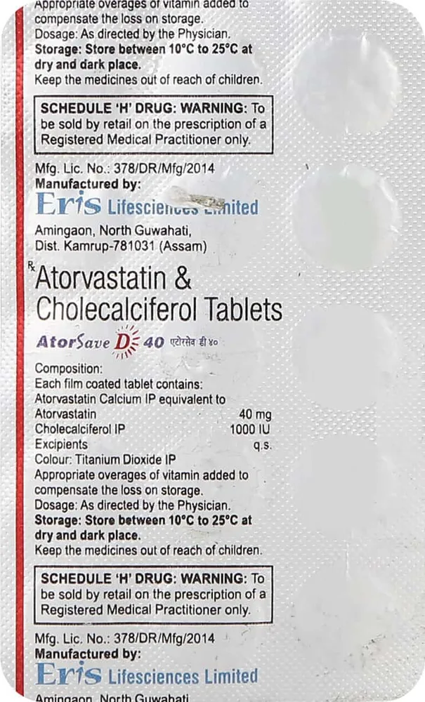 Atorsave D Tablet is a cholesterol-lowering medicine that is used to treat high levels of cholesterol in the body, in a condition known as hypercholesterolemia. It contains a combination of atorvastatin and Vitamin D3/cholecalciferol as its active substances. Atorsave D Tablet should not be used in children below 10 years of age.