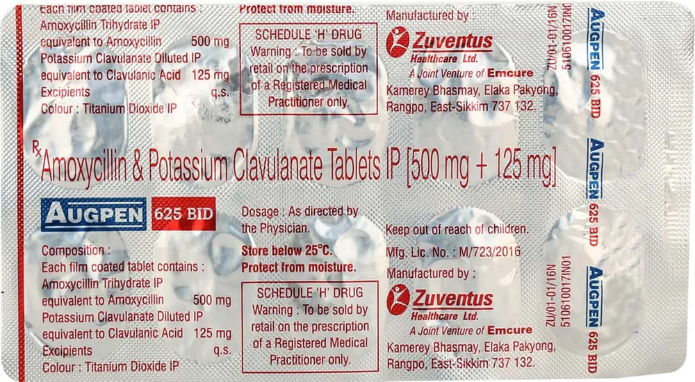 Augpen 625 BID tablet is used to treat bacterial infections in different parts of the body such as lungs, urinary tract, reproductive tract, stomach-intestine, soft tissues, joints and dental. Augpen 625 BID tablet is a combination medicine containing amoxicillin and clavulanic acid as its active ingredient. It is an antibiotic medicine.