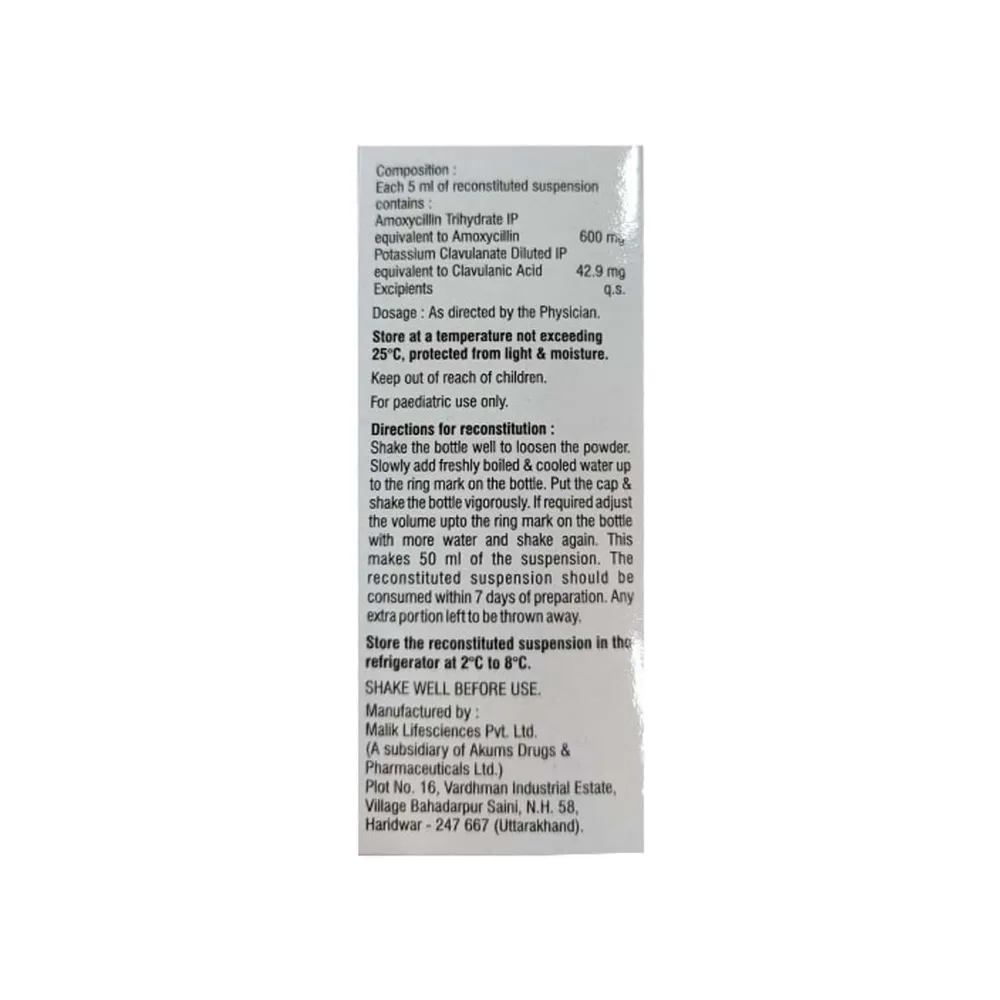 Your doctor may advise giving it two to three times daily. The exact dose and frequency depend on the type and severity of the infection, as well as your child’s age and body weight. Always follow the prescribed dose, schedule, and method of administration.