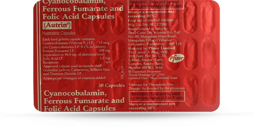 Autrin capsule is used mainly for iron deficiency anaemia, vitamin B deficiency and other relevant conditions. These deficiencies occur primarily due to illness, pregnancy, poor nutrition, digestive disorders, and many other conditions.