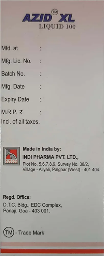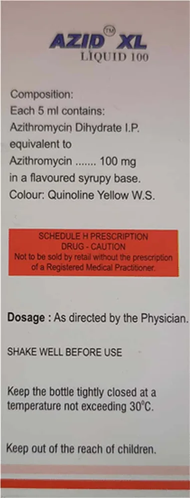 Azid Xl Syrup is an antibiotic that contains azithromycin as its active ingredient. This medicine is designed for children's use only. It is used for the treatment of bacterial infections of various parts of the body like ears, throat, lungs, skin, soft tissues, urinary tract, etc.