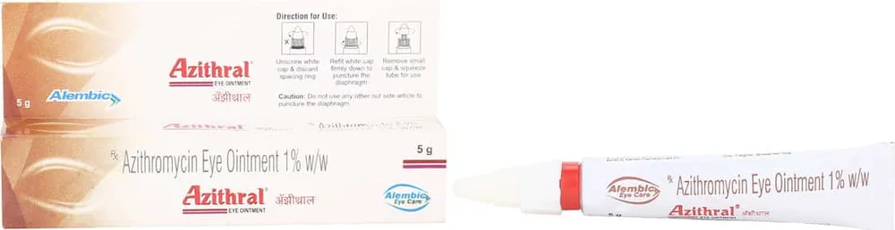 Azithral 1% Eye Oint 5gm eye ointment is used to treat bacterial eye infections. It belongs to a medicine group called macrolide antibiotics.
