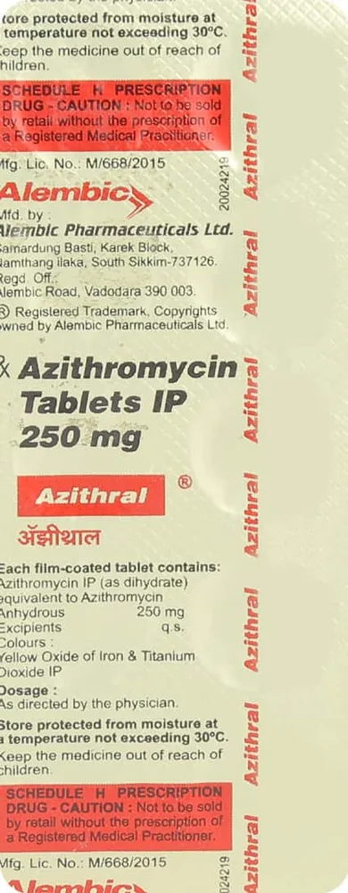 This makes the Azithral 250mg tablet suitable for treating a wide range of infections caused by susceptible bacteria. It is important to take Azithral 250 exactly as prescribed by your doctor . Complete the full course of treatment, even if you start feeling better, because stopping the medication early can lead to treatment failure or recurrence of the infection .