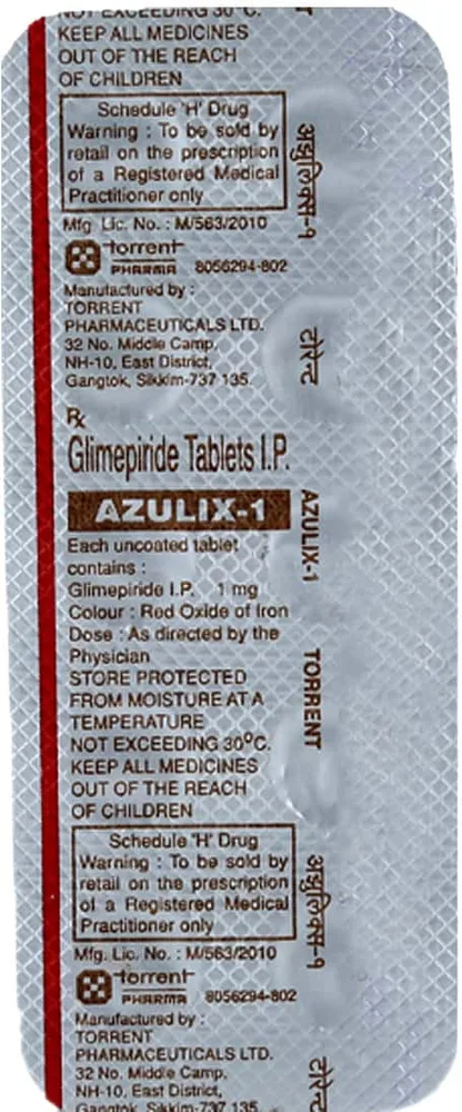 Azulix 1 mg tablet is used for type 2 diabetes mellitus when diet & exercise alone are not able to control your blood sugar levels. It contains glimepiride, an anti-diabetic medicine. Avoid taking the Azulix 1 mg tablet if you are allergic to it, have any liver or kidney diseases or have type 1 diabetes.
