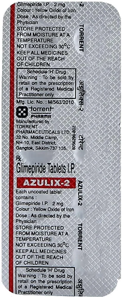 Azulix Tablet is an anti-diabetic medicine containing glimepiride as its active ingredient. It is used for lowering the blood glucose in patients with type 2 diabetes mellitus when diet & exercise alone are not able to control your blood sugar levels. Type 2 diabetes is a health condition in which your cells don’t respond normally to insulin.