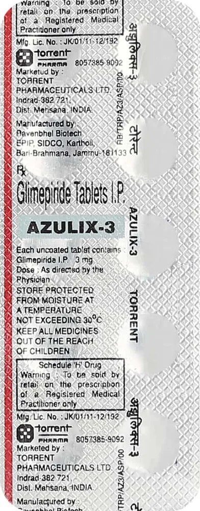 Azulix Tablet is an anti-diabetic medicine containing glimepiride as its active ingredient. It is used for lowering the blood glucose in patients with type 2 diabetes mellitus when diet & exercise alone are not able to control your blood sugar levels. Type 2 diabetes is a health condition in which your cells don’t respond normally to insulin.