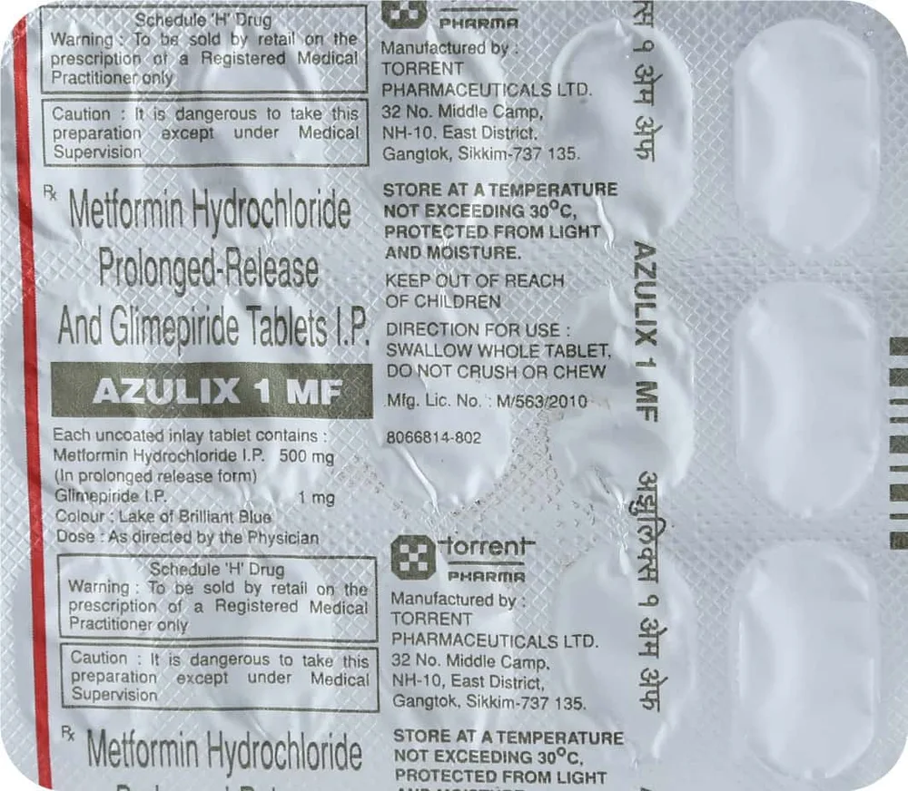 Azulix Mf Tablet is used to treat type 2 diabetes mellitus; when diet, exercise and Glimepiride or Metformin alone is not able to control the blood sugar levels adequately.
