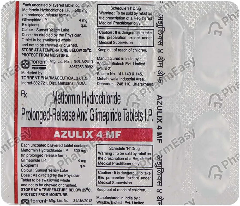 Take this tablet at the same time daily to achieve optimal therapeutic benefit. Before using the Azulix Mf, please inform your doctor if you are pregnant, planning a pregnancy, or breastfeeding, and provide detailed medical history. Individuals with uncontrolled diabetes face an increased risk of various health complications, such as eye, kidney, and nerve issues, heart diseases, and stroke.