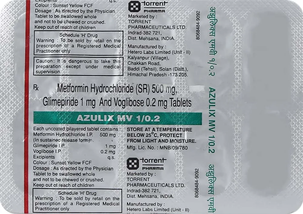 Azulix Mv tablet is an anti-diabetic medicine used to manage type 2 diabetes mellitus. It is a combination of metformin, glimepiride and voglibose as active ingredients. Do not miss any dose or abruptly stop taking this tablet without informing your doctor.