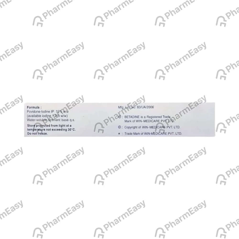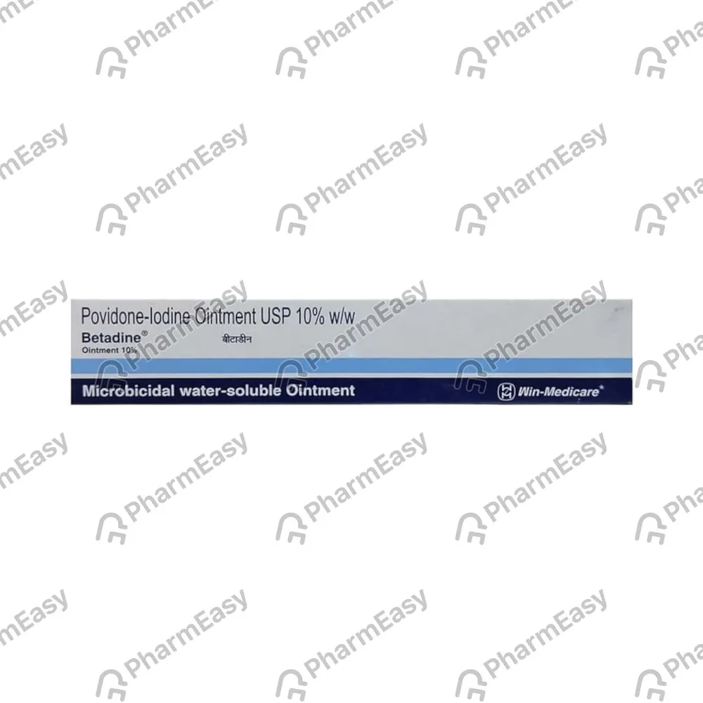 Betadine Ointment is a topical antiseptic that is used to treat & prevent infections in minor wounds or cuts. It provides infection protection against a variety of germs that can cause infection in minor cuts, wounds, scrapes and burns. It contains povidone-iodine as its active ingredient.