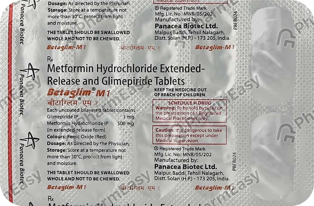 Betaglim M tablet is a medication used to treat type 2 diabetes mellitus. It contains a combination of glimepiride and metformin as its active ingredients. This medication helps increase insulin production and restore the body's natural response to insulin.