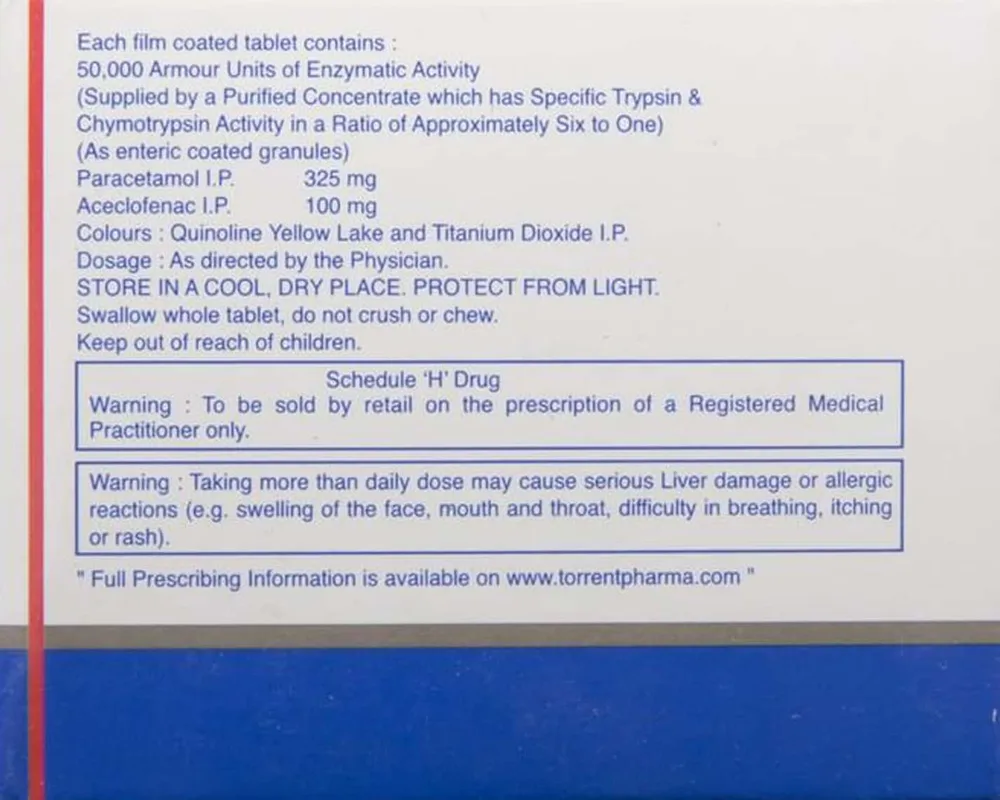 Paracetamol and Aceclofenac produce their action by blocking an enzyme responsible for producing chemical substances such as prostaglandins which cause inflammation and swelling. Take this medicine as advised by your doctor. You can take Chymoral AP with food to avoid stomach upset.