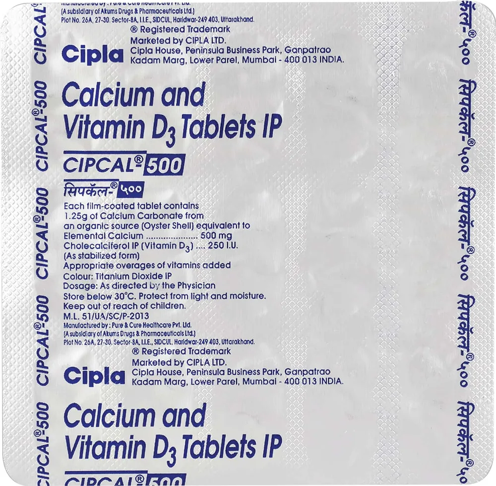 Cipcal 500 tablets contain both calcium and vitamin D3, which are essential for strong bones. They are used to treat deficiencies in these nutrients and can also help manage bone disorders like osteoporosis. You can also take Cipcal 500 as a daily supplement to maintain healthy bones and teeth.