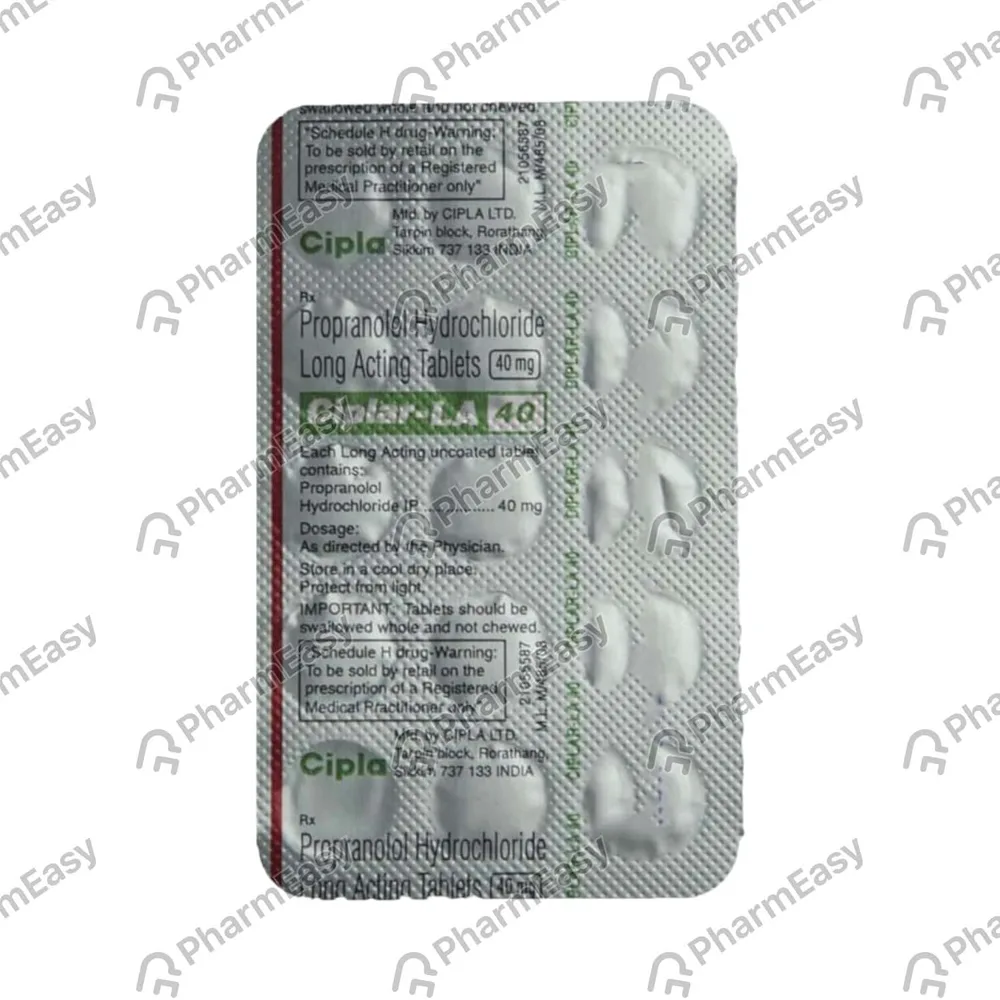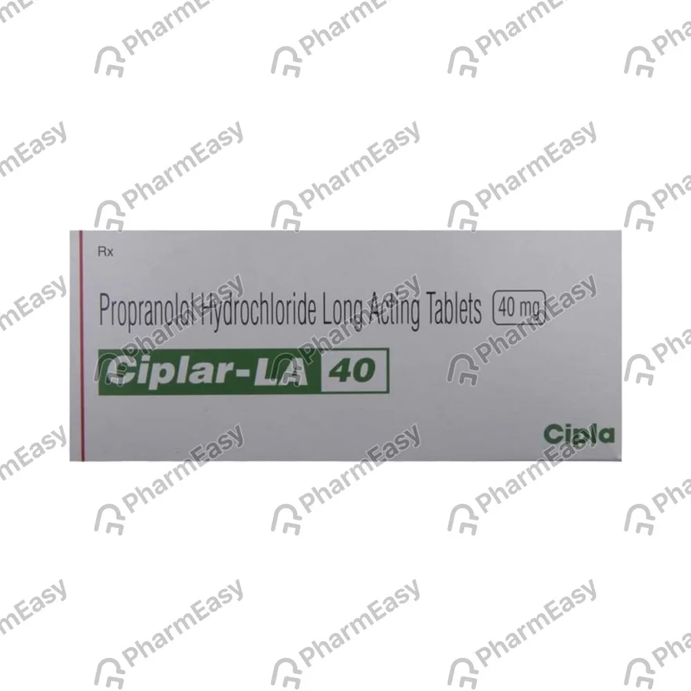 Ciplar-LA 40 tablet is used to treat high blood pressure, heart-related chest pain or irregular heartbeats. It is used to prevent heart attacks, tremors and migraine attacks. It contains propranolol, which belongs to a group of medications known as beta-blockers.