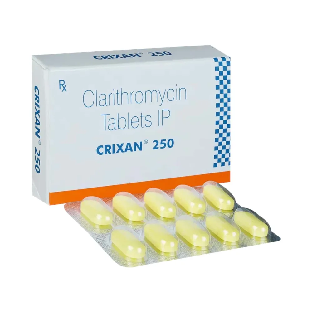 Crixan Tablet is used to treat infections caused by bacteria. These bacteria also need growth and multiplication for their survival. Clarithromycin being antibiotic medicine halts their growth by blocking the protein synthesis process in them. Thus, their growth and multiplication get arrested and eventually it helps to treat the infectious conditions.