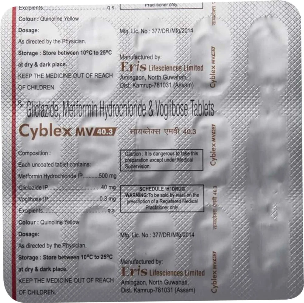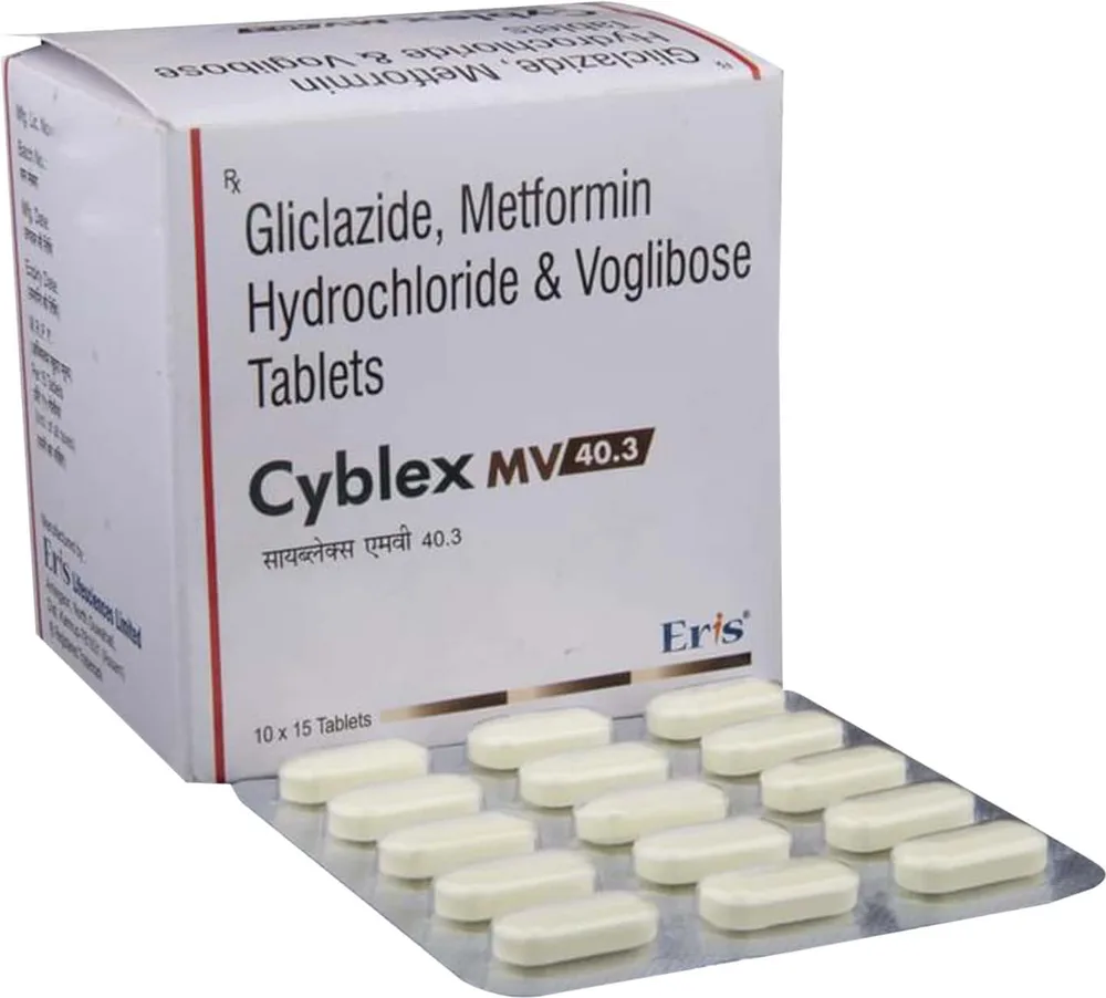 Cyblex Mv Tablet is a combination medicine used in the treatment of type 2 diabetes mellitus. It contains metformin, gliclazide, and voglibose as its active components. This medicine should be taken as directed by the doctor and in doses and duration as prescribed.