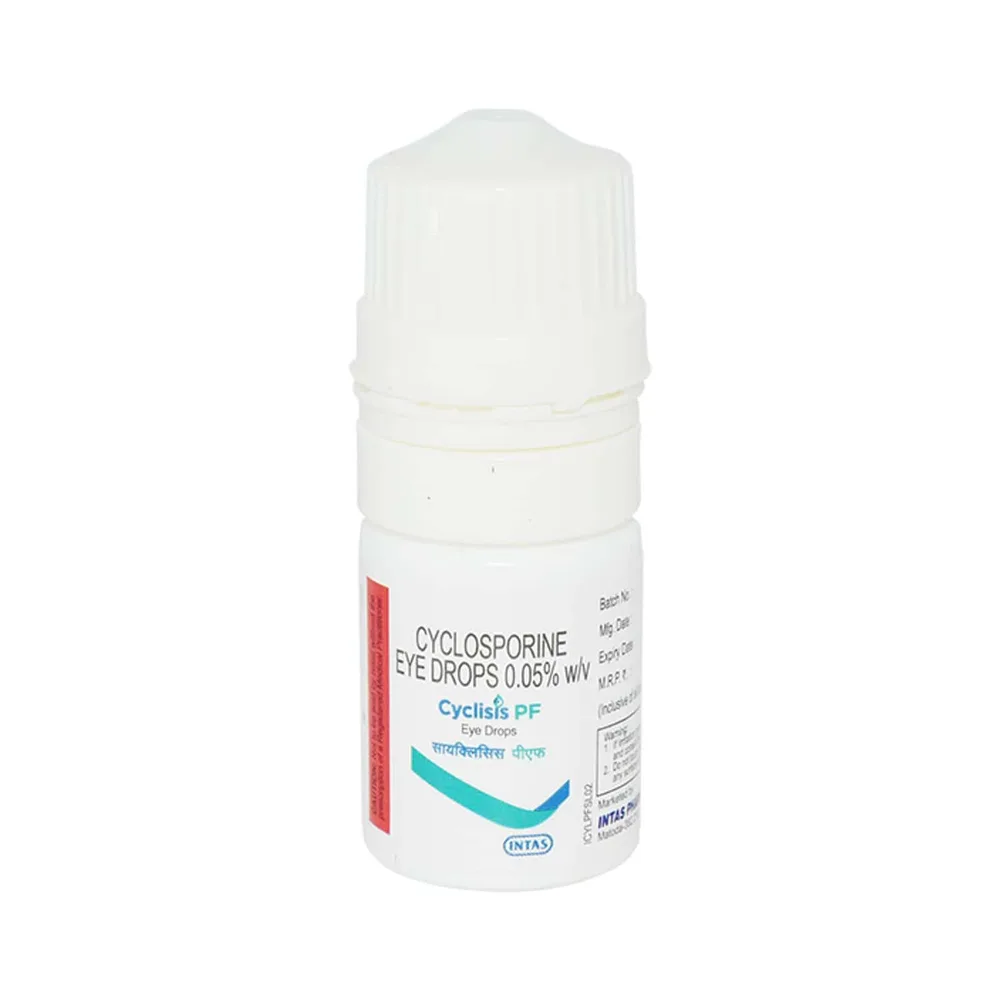 Cyclisis Pf Eye Drop is a medication that contains cyclosporin, an immunosuppressant. It is used to treat a condition called dry eye syndrome (keratoconjunctivitis sicca). This allergic eye condition affects the transparent layer in the front of the eye and the thin membrane that covers it.