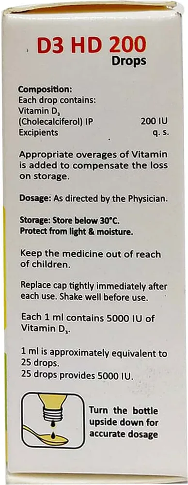 D3 Hd Oral Drop contains Vitamin D3, also known as cholecalciferol, which is an essential nutrient that helps your child grow strong, healthy bones and teeth. This formulation is specially made for children who may not be getting enough Vitamin D from sunlight or diet. Vitamin D3 plays a key role in absorbing calcium and phosphorus, the minerals needed for proper bone formation, and helps prevent rickets—a condition where bones become soft, weak, and can bend easily.