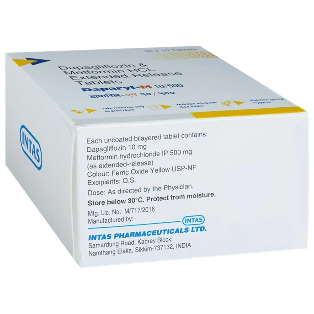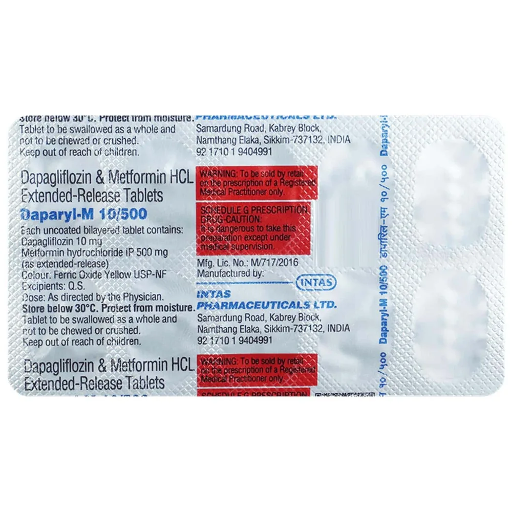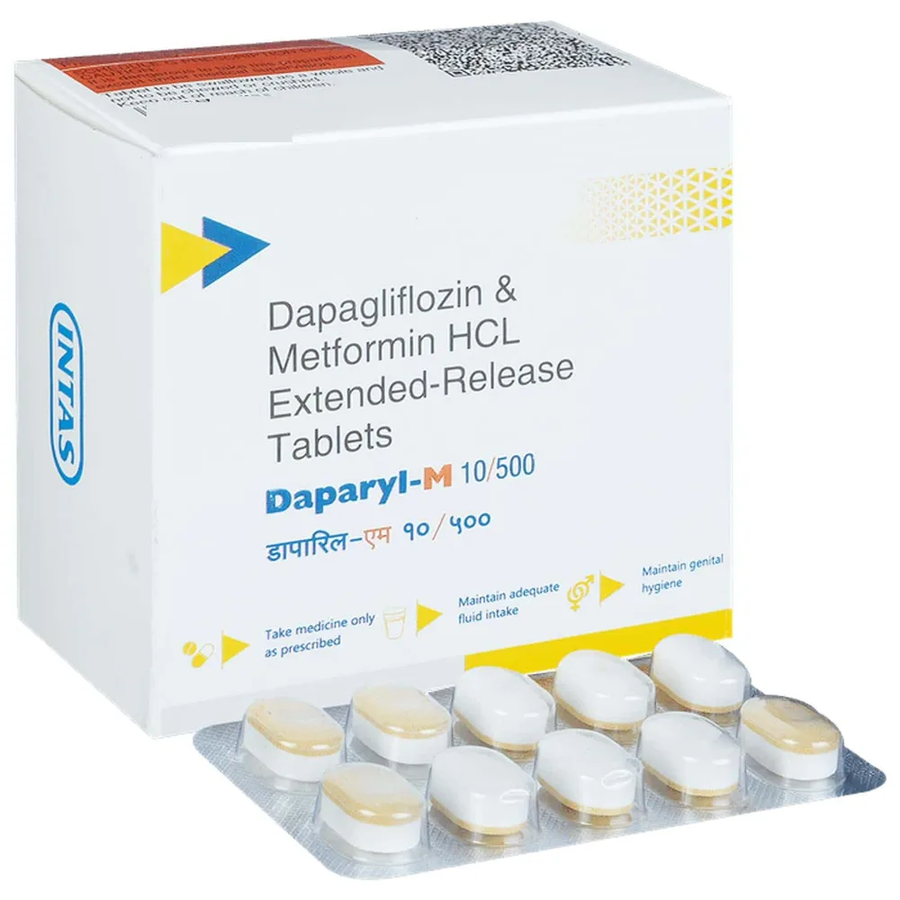 Daparyl M tablet is an anti-diabetic medication prescribed to help manage Type 2 diabetes mellitus in adults, alongside a healthy diet and regular exercise. The active ingredients in Daparyl M tablet are dapagliflozin and metformin. This medication is intended for adults aged 18 years and older.