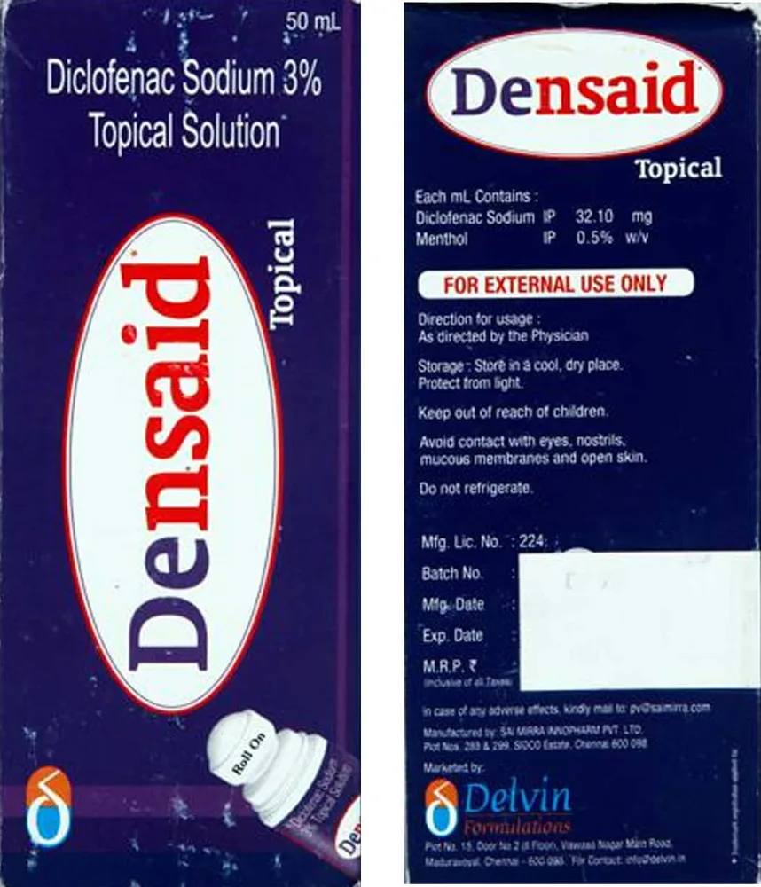 Densaid Liquid For Skin Application is a topical pain-relieving Liquid For Skin Application. It is used to relieve joint and muscle pain. It contains diclofenac as its active ingredient.