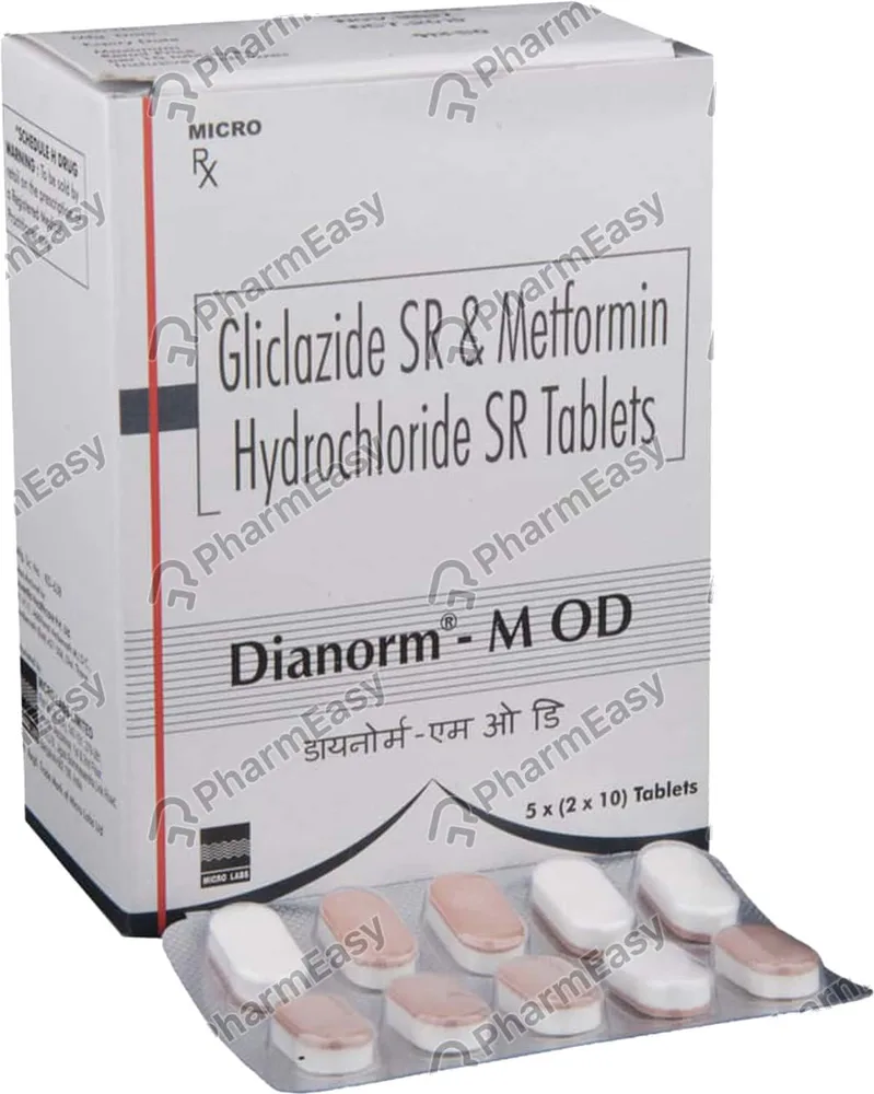 Dianorm M Od Tablet is an anti-diabetic medicine used to treat type 2 diabetes mellitus. It contains a combination of gliclazide and metformin as active ingredients. It is used along with a healthy diet and regular exercise for the control of high blood sugar in patients having diabetes.