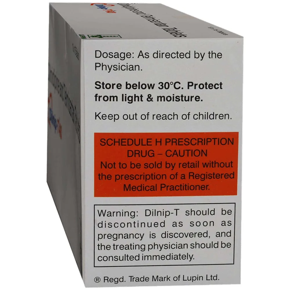 Dilnip T Tablet should be taken as directed by your doctor. Swallow it as a whole with a glass of water, do not cut, break or chew the tablet. It can be taken with or without food. It would be best if you take Dilnip T Tablet at a fixed time for optimal results, and you should not consume it more than that prescribed by your doctor.
