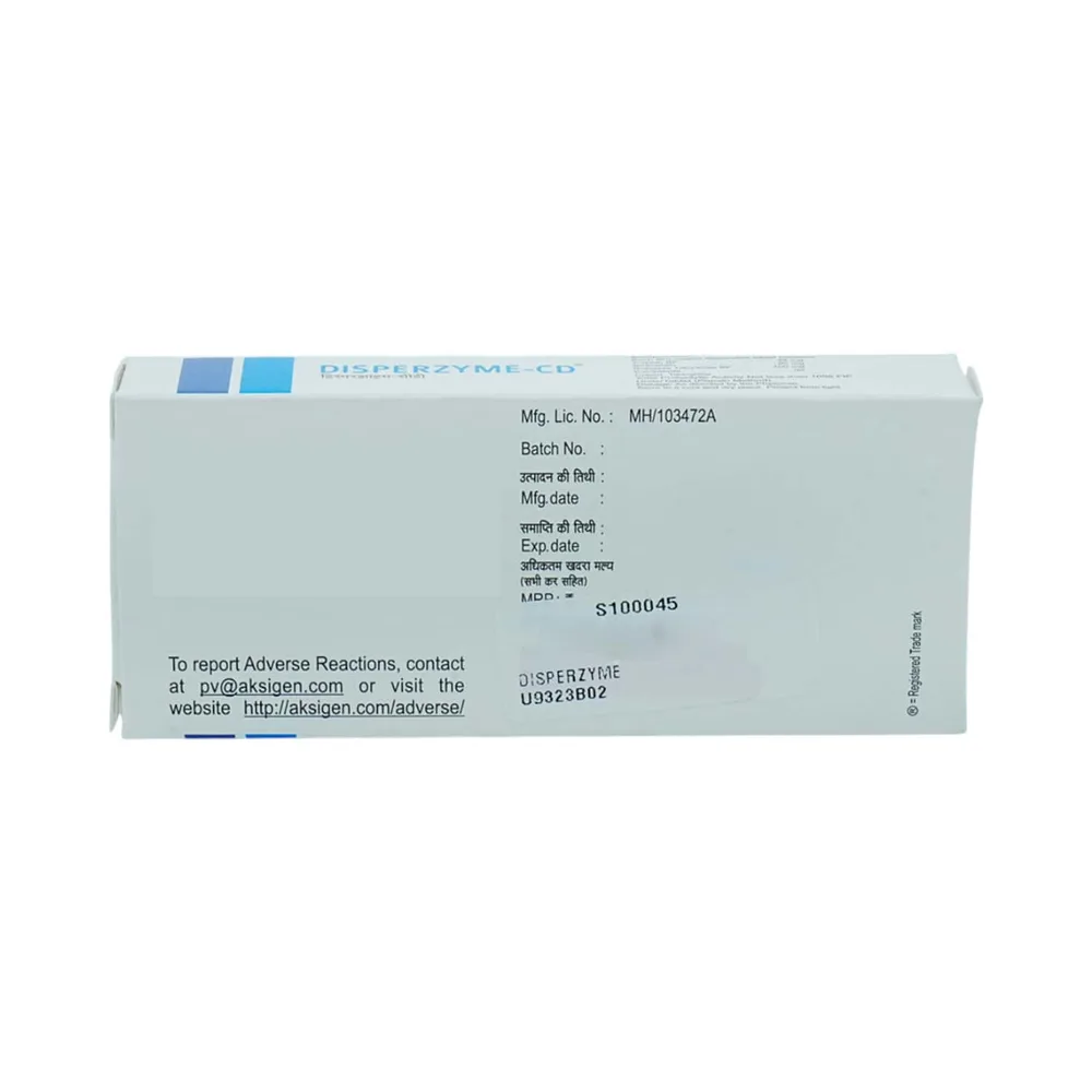 Disperzyme Cd Tablet is used for relieving inflammation and pain associated with various conditions such as osteoarthritis, rheumatoid arthritis, and joint pain. It contains a combination of trypsin, bromelain and rutoside as its active components. Trypsin and bromelain are enzymes, whereas rutoside is an antioxidant.