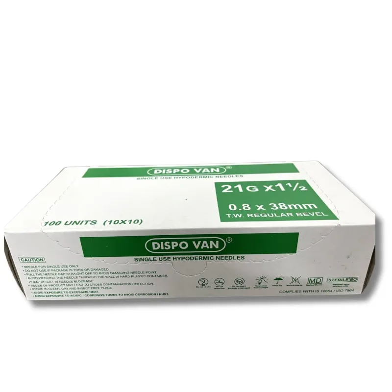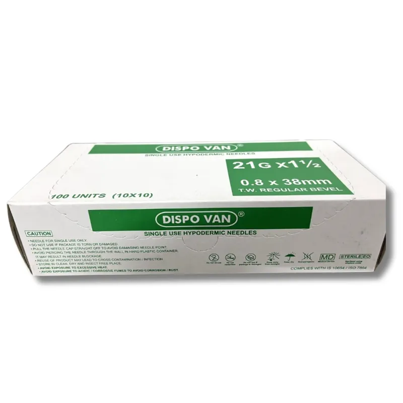 This product is a sterile, single-use hypodermic needle designed for the administration of liquid medications and other fluids into the body. It is constructed from medical-grade stainless steel, featuring a regular bevel tip for smooth penetration. The needle is intended for use with standard syringes to facilitate the rapid delivery of injectable substances.