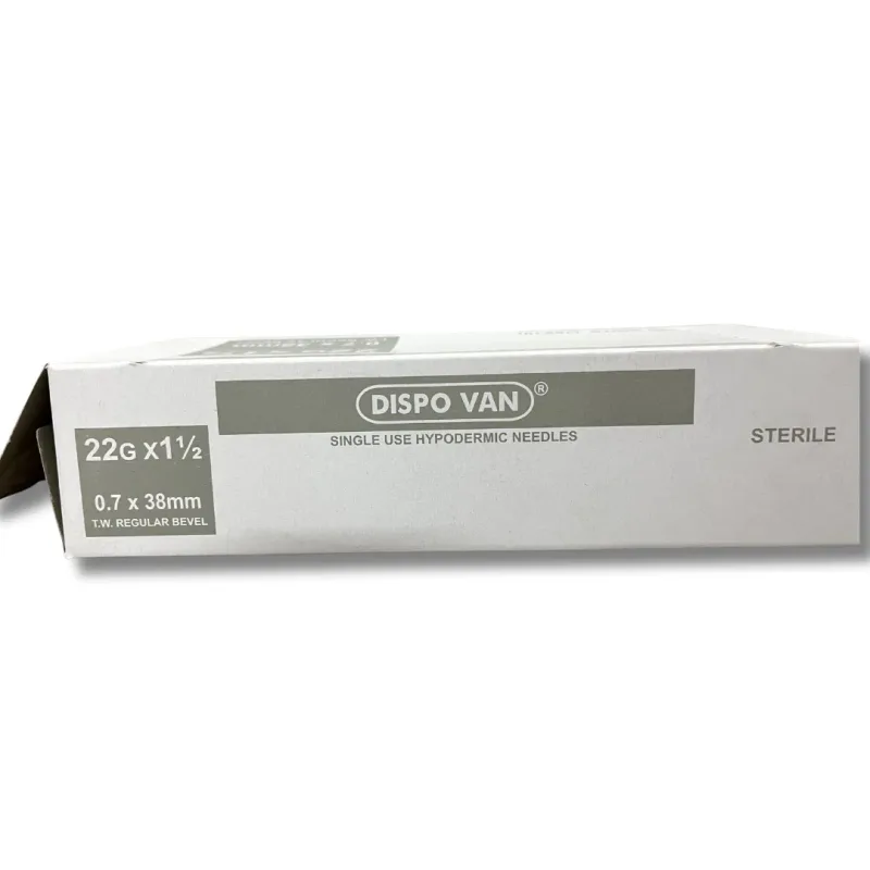 The key features of this hypodermic needle include its 22-gauge diameter and 1.5-inch length, a combination suitable for a range of injection depths and viscosities of fluids. The regular bevel design is intended to facilitate smooth tissue penetration.