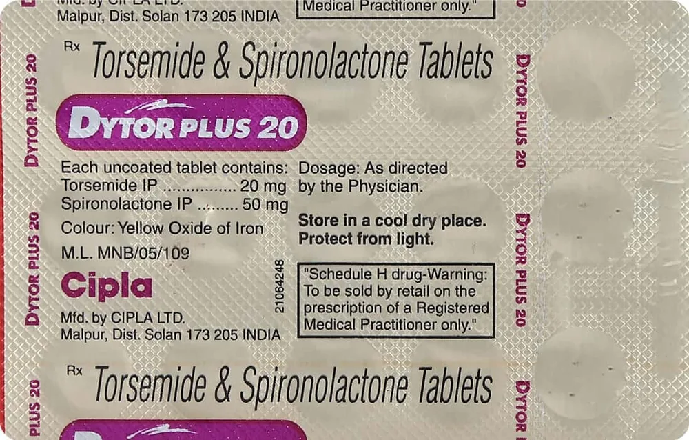 Dytor 10 mg tablet contains torsemide whereas the Dytor Plus 20 tablet is a combination medicine containing torsemide and spironolactone.