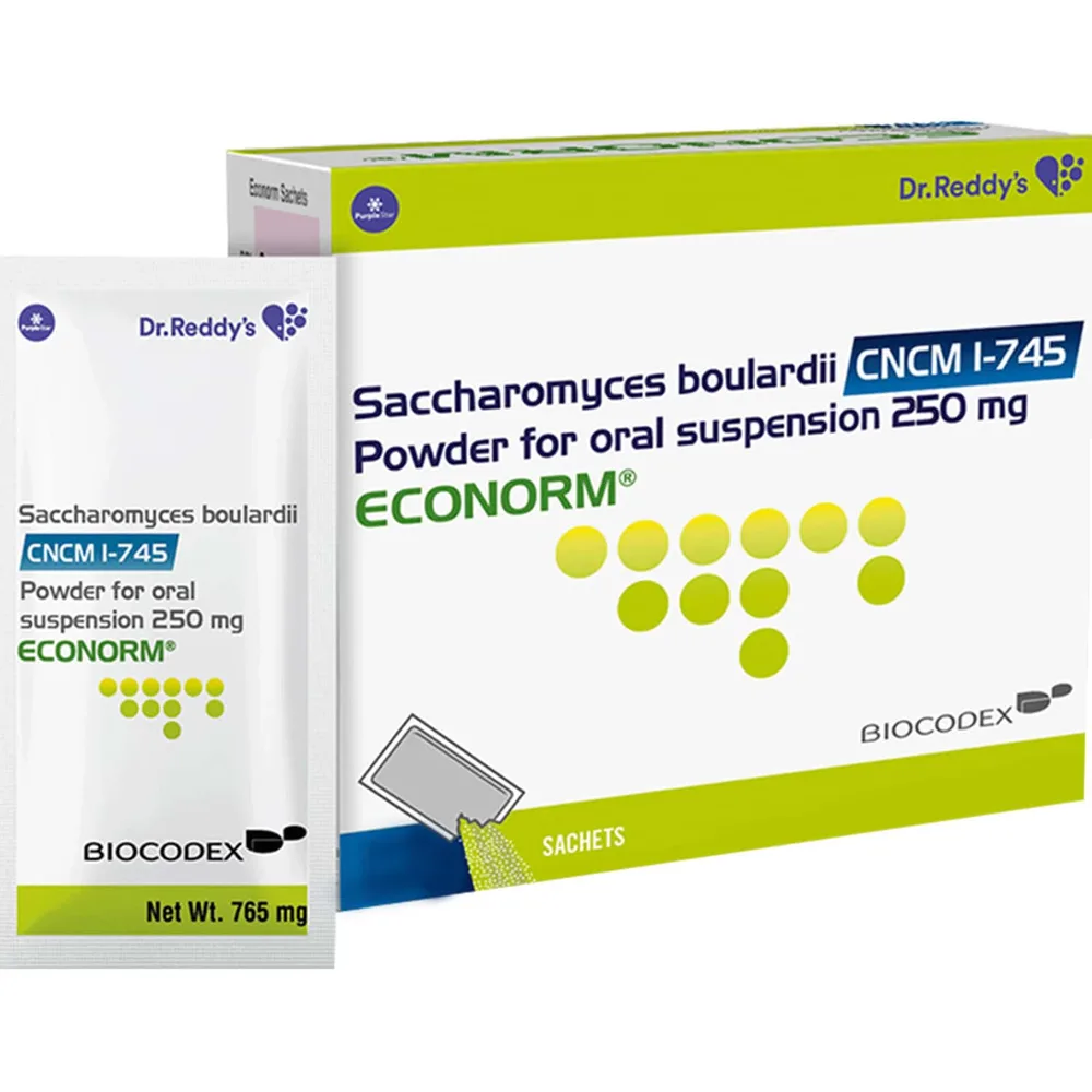 Econorm sachet is a medicine that helps treat sudden (acute) diarrhoea caused by infections. It is also useful in preventing diarrhoea that may happen when you're taking antibiotics. This medicine contains a probiotic called Saccharomyces boulardii , a friendly yeast that helps restore the natural balance of beneficial bacteria in your gut.