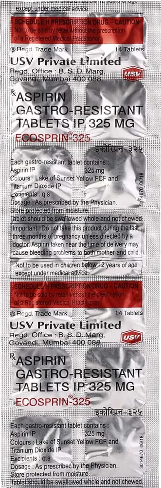 Order Ecosprin 325 MG Tablet (10) online & save up to 24% on PharmEasy. ✓ Super Quick Home Delivery with COD ✓ No Minimum Order Value ✓ Pan India Delivery.