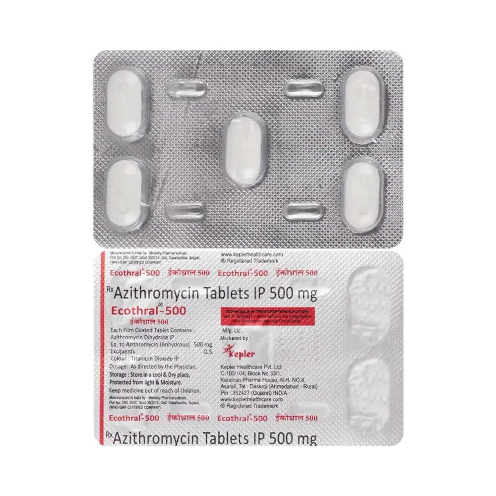 The active ingredient in Ecothral tablet is azithromycin, a broad-spectrum antibiotic that works by stopping the growth of bacteria responsible for the infection. It is very important to take Ecothral tablet exactly as prescribed by your doctor. Even if you start feeling better within a few days, do not stop taking the medicine on your own.
