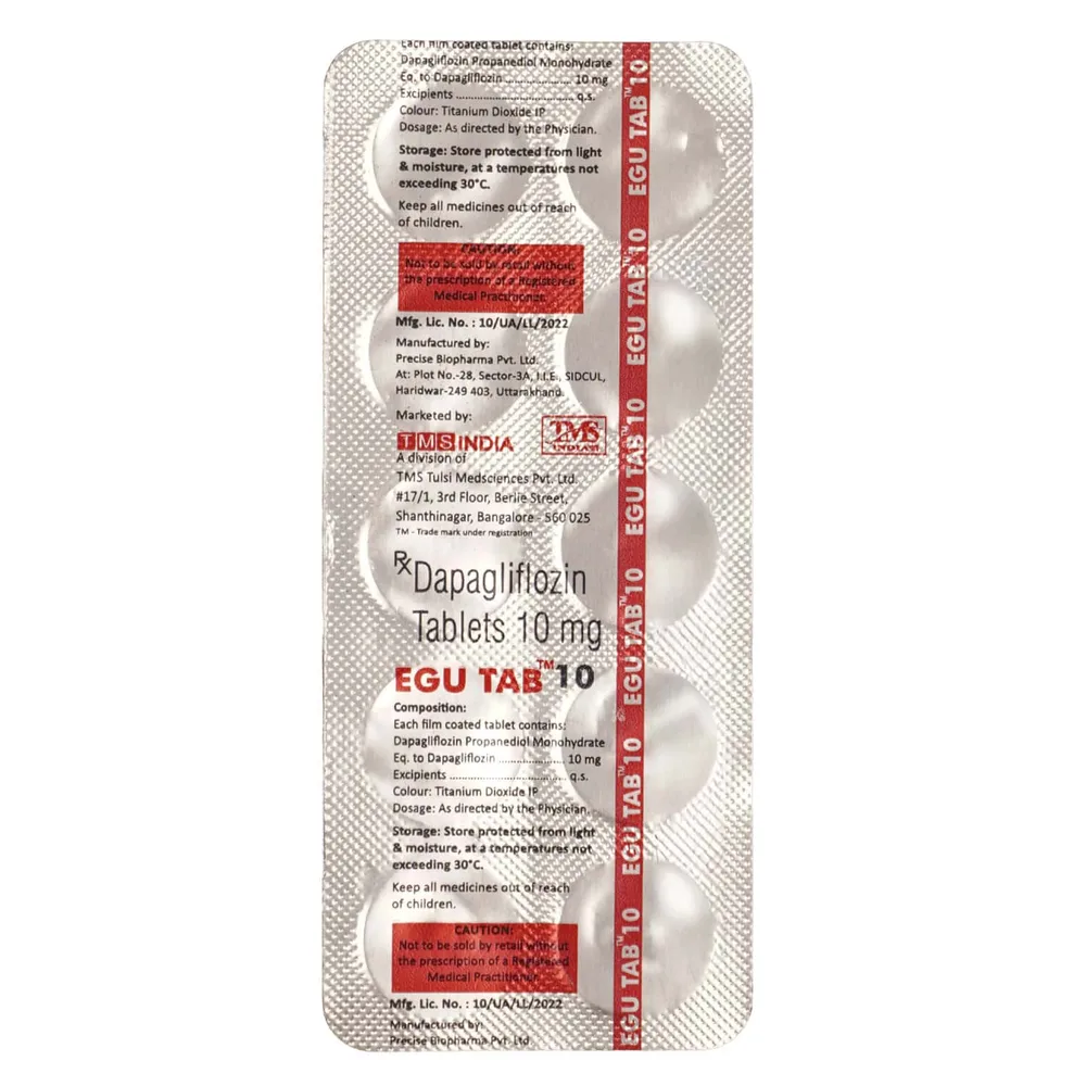 Egu Tab Tablet is an anti-diabetic medicine containing dapagliflozin as the active ingredient. It is used for the treatment of type 2 diabetes along with diet and exercise. Egu Tab lowers high blood sugar levels by excreting excess blood sugar through urine.