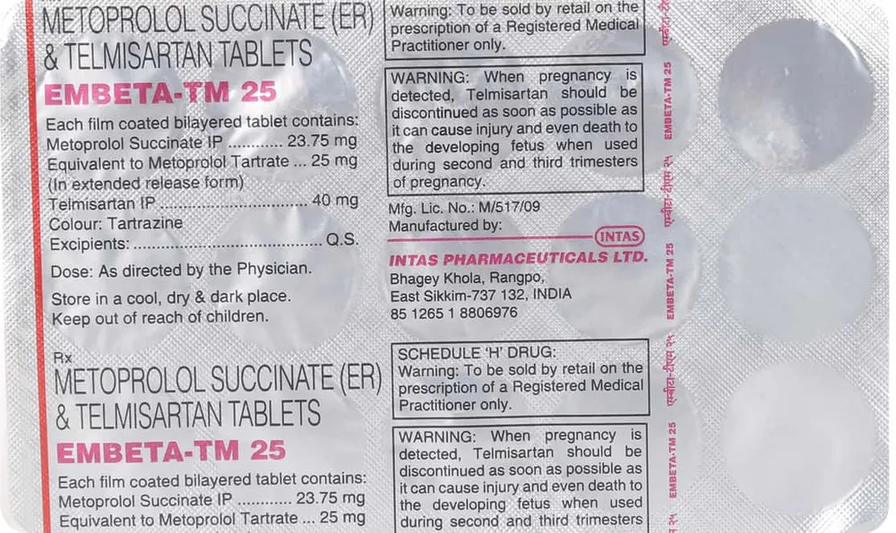Embeta Tm Tablet is an antihypertensive medication used to treat high blood pressure when it cannot be controlled with a single medication. It is a combination medicine containing metoprolol and telmisartan. This medication works by relaxing the blood vessels and reducing elevated blood pressure.