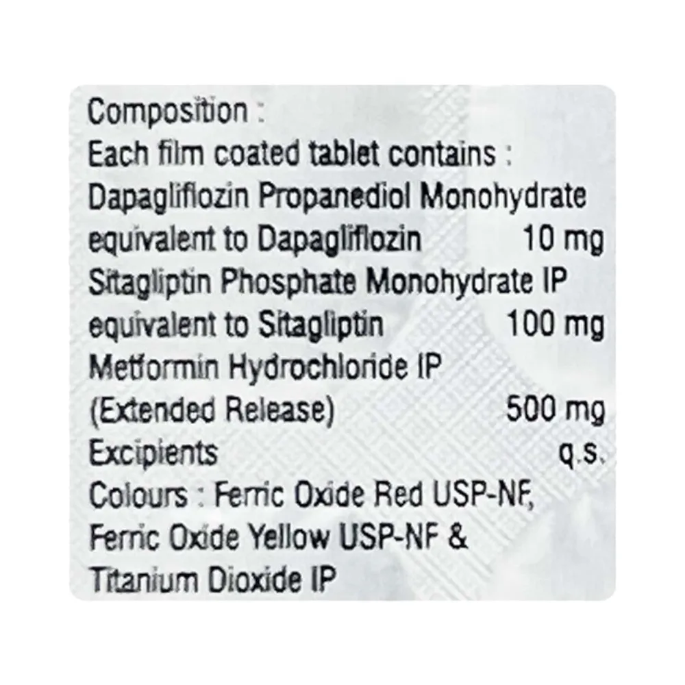 Emsita Trio Tablet is a combination medication used to manage blood sugar levels in adults with type 2 diabetes mellitus. It contains a combination of dapagliflozin, metformin, and sitagliptin as its active ingredients. This medicine should be used alongside a healthy diet and exercise routine to enhance blood sugar control.