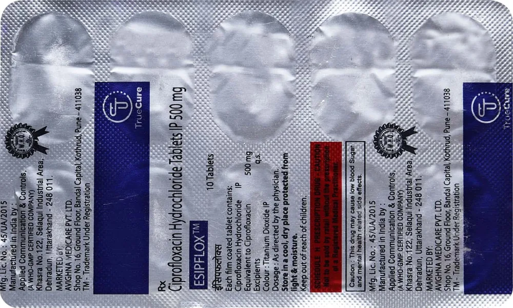 Esipflox Tablet is an antibiotic and is used in treating various types of bacterial infections such as pneumonia, sinus infection and infections of the skin, ear, nose, stomach, urinary tract, etc. It contains ciprofloxacin as its active ingredient. Esipflox Tablet works killing the bacteria responsible for infection by blocking action of certain enzymes essential for DNA relplication, repair etc.