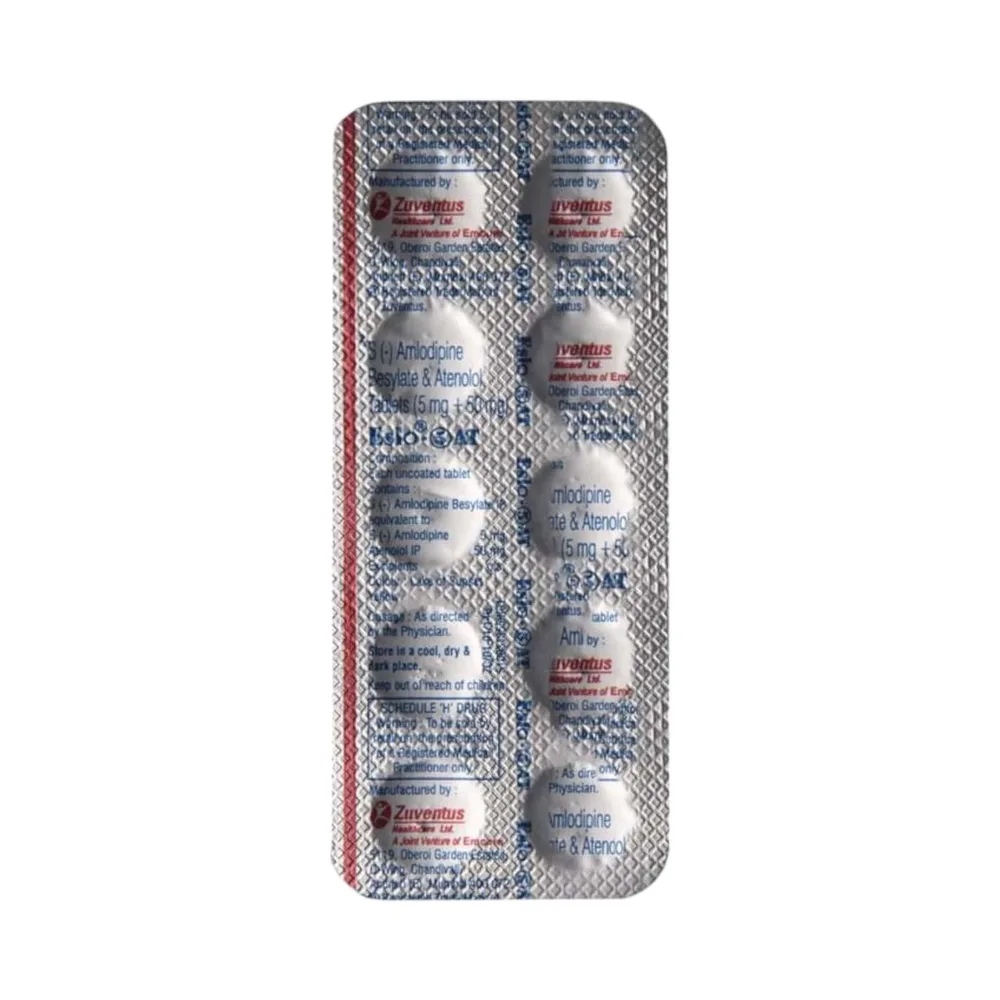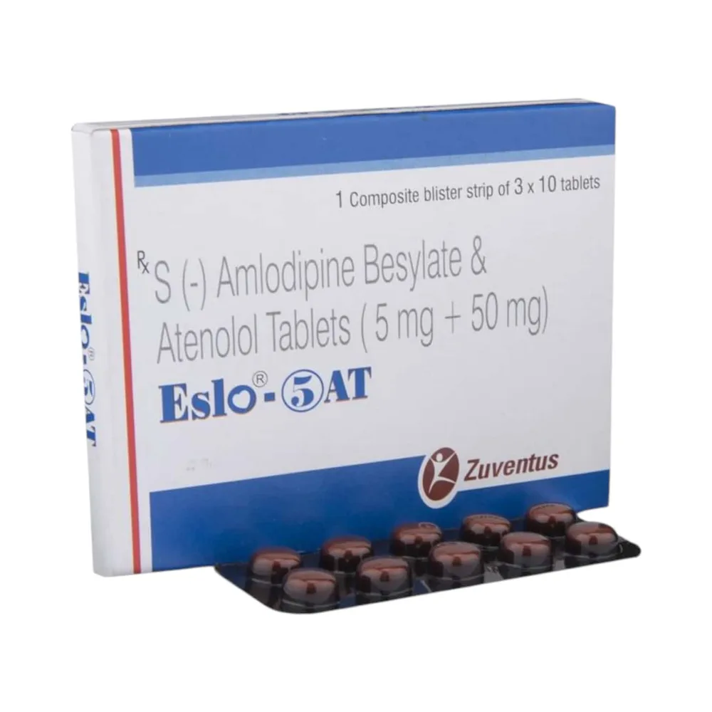 Eslo At Tablet is an antihypertensive medicine used to treat high blood pressure and angina pectoris. Angina pectoris is a condition characterised by chest pain, tightness, and a squeezing sensation in the chest that radiates toward the shoulders, arms, and neck. It consists of a combination of two medicines, namely amlodipine and atenolol.