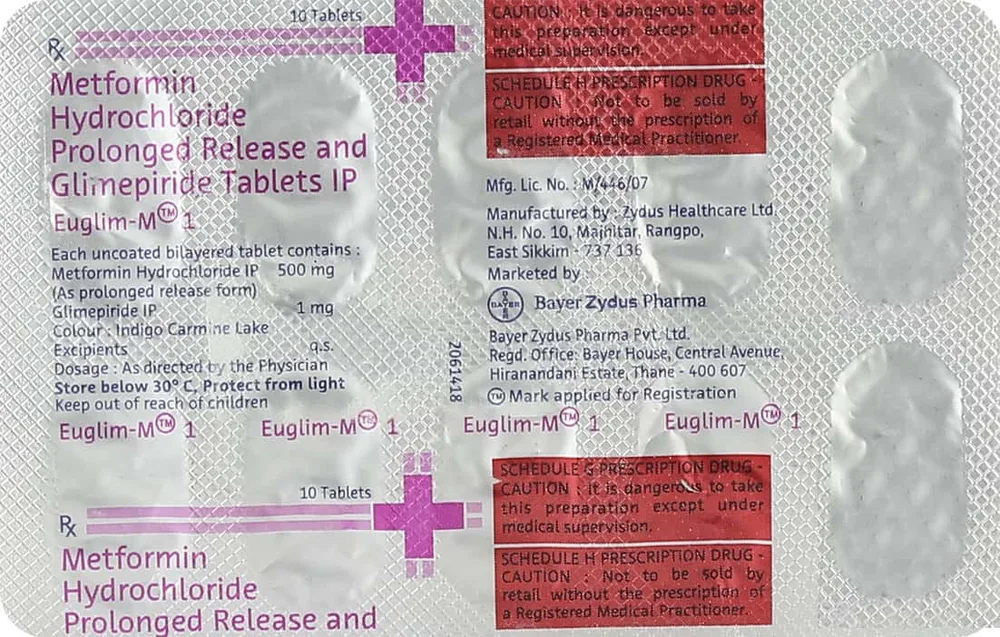 Take this tablet at the same time daily to achieve optimal therapeutic benefit. Before using the Euglim M, please inform your doctor if you are pregnant, planning a pregnancy, or breastfeeding, and provide detailed medical history. Individuals with uncontrolled diabetes face an increased risk of various health complications, such as eye, kidney, and nerve issues, heart diseases, and stroke.