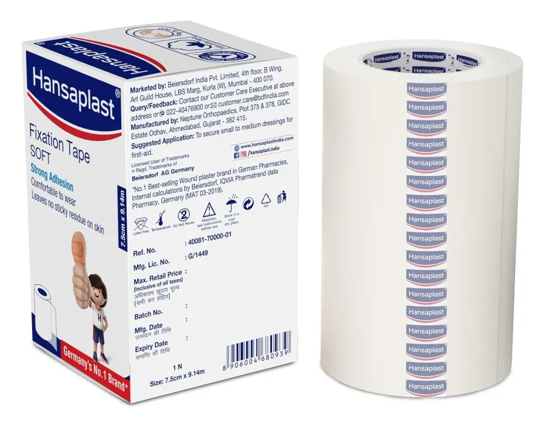 Hansaplast fixation tape is used as a retention tool for wound dressings, keeping gauze, wound pads and other dressings securely in place. It is made of medical grade cotton breathable material, it conforms to the body so that it can be worn comfortably all day.