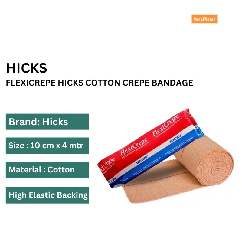 Hicks Flexicrepe Cotton Crepe Bandage B.P.C is a medical Grade, stretchable bandage designed to provide firm support and compression for injured muscles and joints. It is made from superior cotton material, it offers excellent elasticity, allowing it to conform comfortably to different body parts.