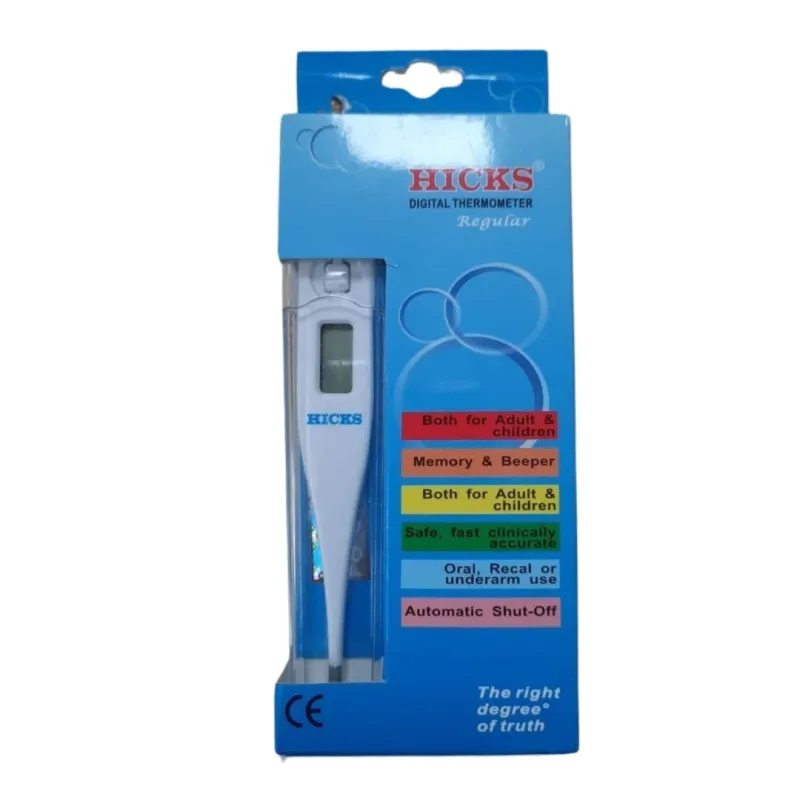 The Hicks Digital Thermometer DMT-101 is a reliable and easy-to-use device used for quick and accurate temperature readings. It gives a fast response time of just 20 seconds, it provides precise measurements, making it best for home and medical use.