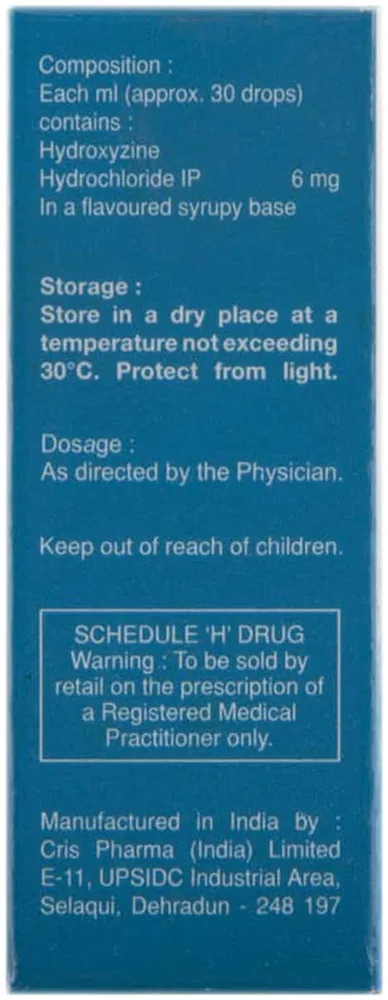 Hicope Drop is an anti-allergic medicine that contains hydroxyzine as an active ingredient. It is designed to be used only by children. It helps in improving symptoms associated with allergic skin conditions such as itching, swelling, redness, rashes, hives, scaly and patchy skin.